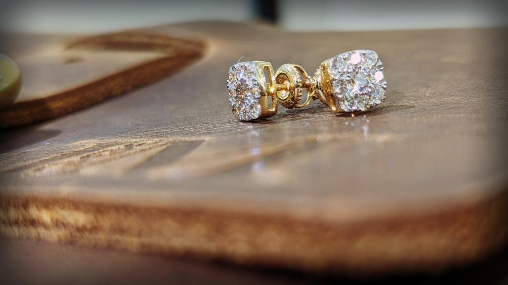 1 carat each stud Lab diamonds.. 14k yellow gold
