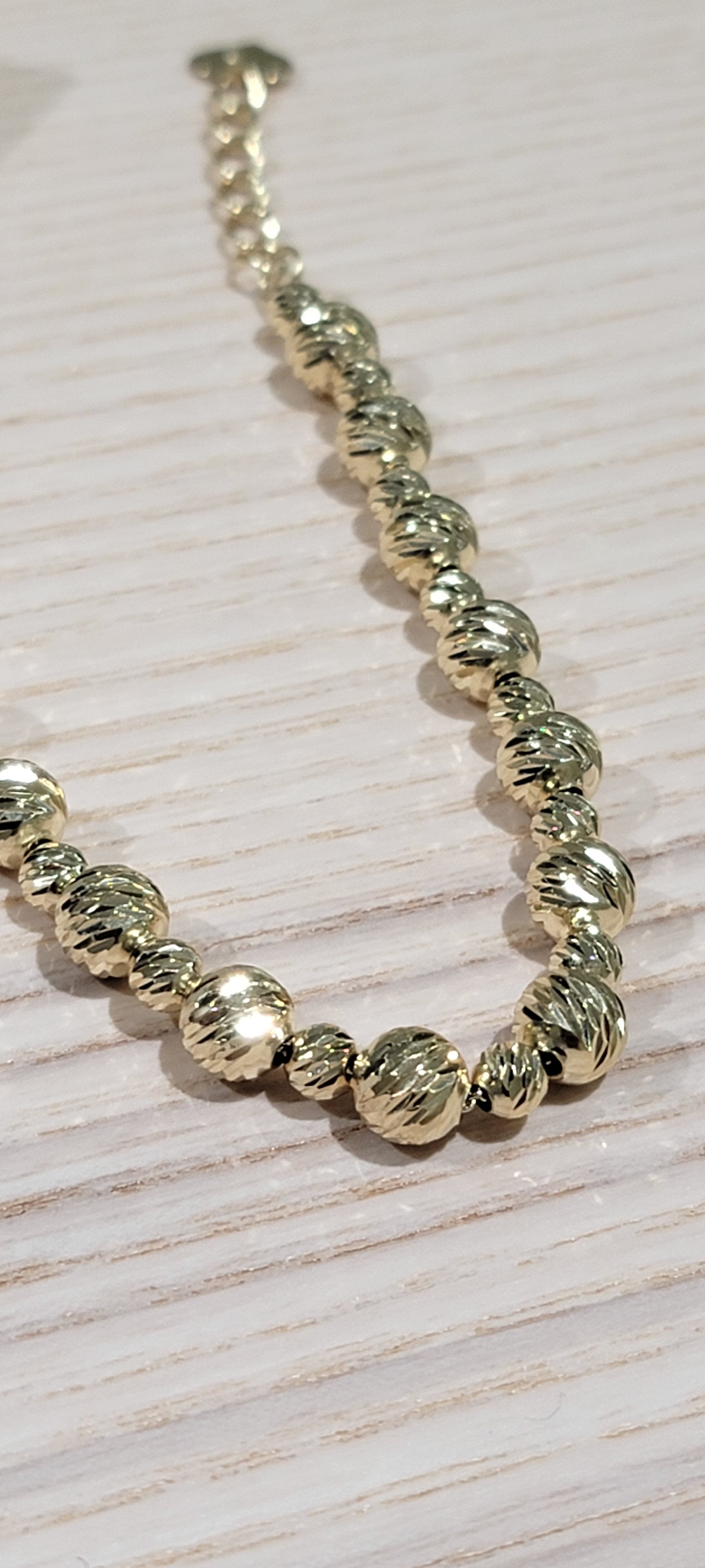 14kt gold fancy bracelet hand cut for maximum shine. Each ball is designed to give you the maximum shine and looks like diamonds. Adjustable so you can wear it as a anklet . heavy